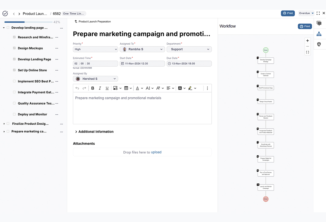 • Real-time task tracking to detect delays and ensure quick resolution.